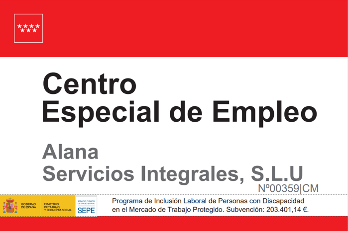 Bienvenido a ALANA, un Centro Especial de Empleo especializado en el sector de limpiezas y servicios de mantenimiento. Desde aquí queremos darle la bienvenida a nuestra web, en la que hemos incluido información sobre la actividad empresarial a la que nos dedicamos y esperamos poder ayudarle en el conocimiento de nuestros servicios.